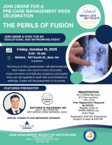 Friday, November 7, 2025 – NH Conference – The Case Managers View: A Window into Global Healthcare Challenges – Full Day – In person and Virtual registration options – St. Anselm’s College, Manchester, NH. Registration now open – Register online here. Download Exhibitor Agreement here. 10 exhibitor spaces remain open Download Event Flyer here.